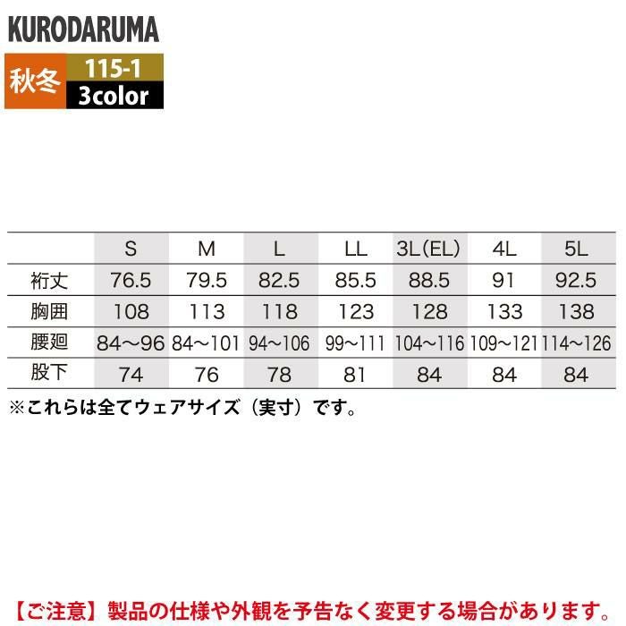作業服 作業着 クロダルマ 作業服 秋冬用 115-1 ツナギ服 3L-5L