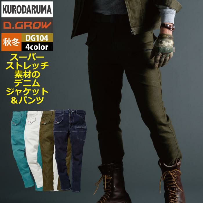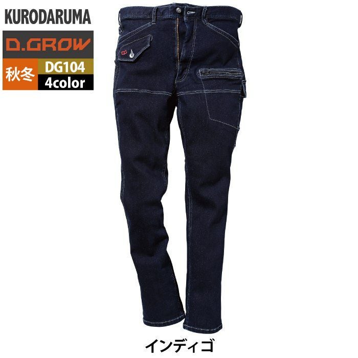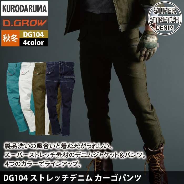 作業服 作業着 クロダルマ 作業服 秋冬用 DG104 ストレッチデニムカーゴパンツ 73-88