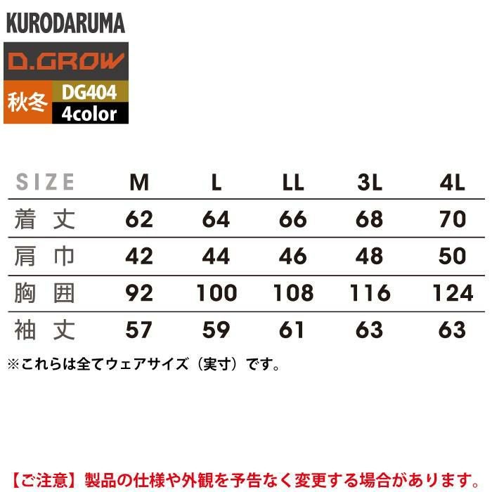 作業服 作業着 クロダルマ 作業服 秋冬用 DG415-1 アノラックパーカー 3L-5L
