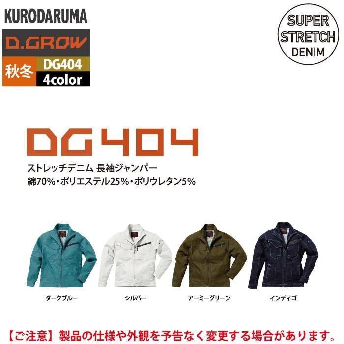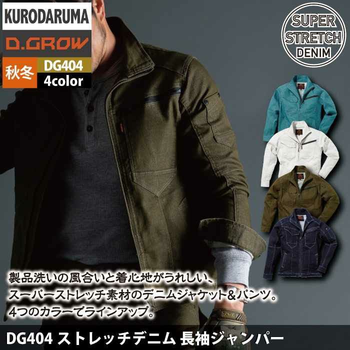 作業服 作業着 クロダルマ 作業服 秋冬用 DG404 ストレッチデニム長袖ジャンパー 3L-4L