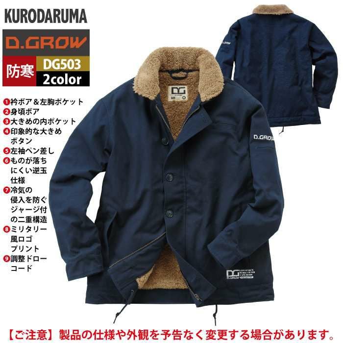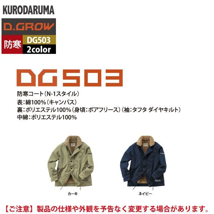 作業服 作業着 クロダルマ 作業服 防寒着 秋冬用 DG503 防寒コート(N-1スタイル) M-LL