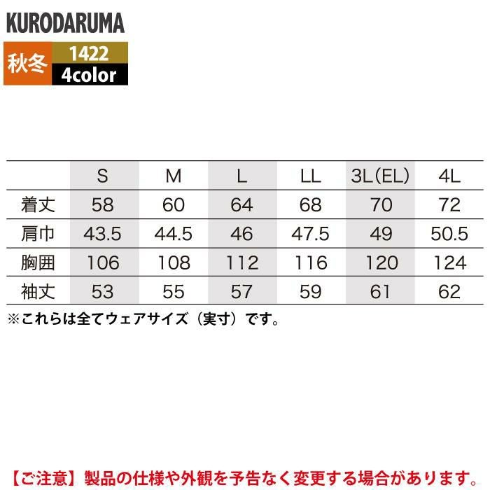 作業服 作業着 クロダルマ 作業服 秋冬用 1422 長袖ジャンパー 3L-4L