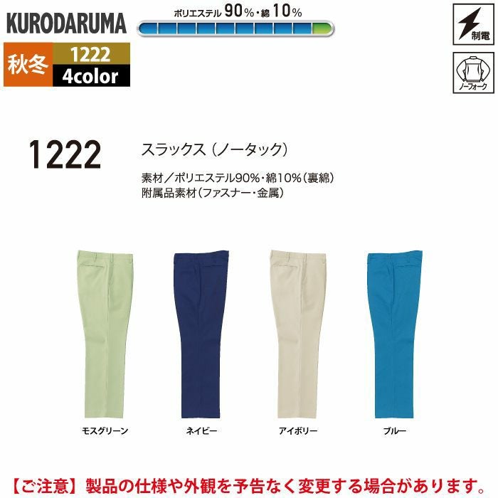 作業服 作業着 クロダルマ 作業服 秋冬用 1222 スラックス(ノータック) 91-120
