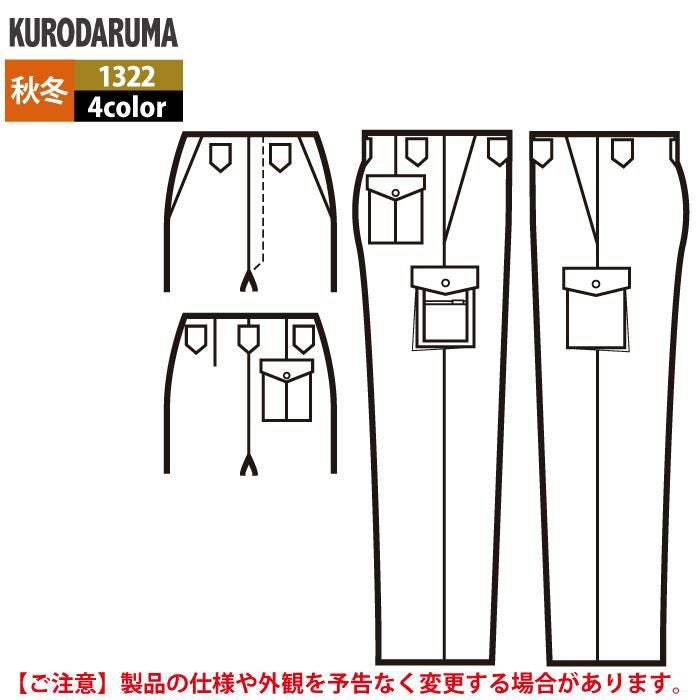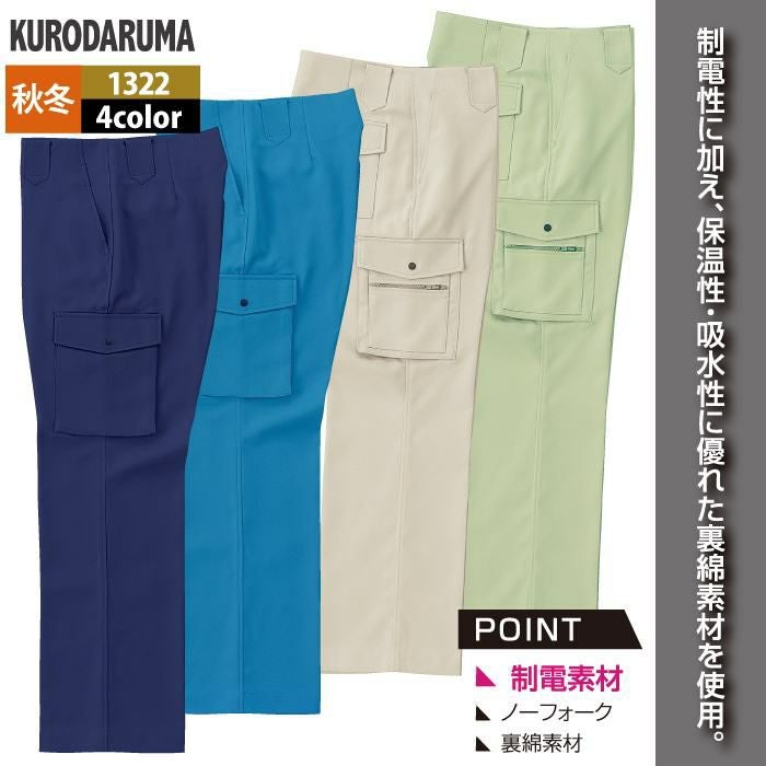 作業服 作業着 クロダルマ 作業服 秋冬用 1322 カーゴパンツ(ノータック) 70-88