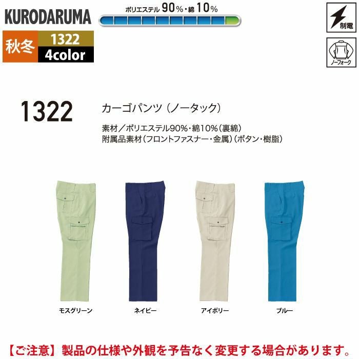 作業服 作業着 クロダルマ 作業服 秋冬用 1322 カーゴパンツ(ノータック) 91-120