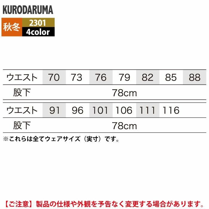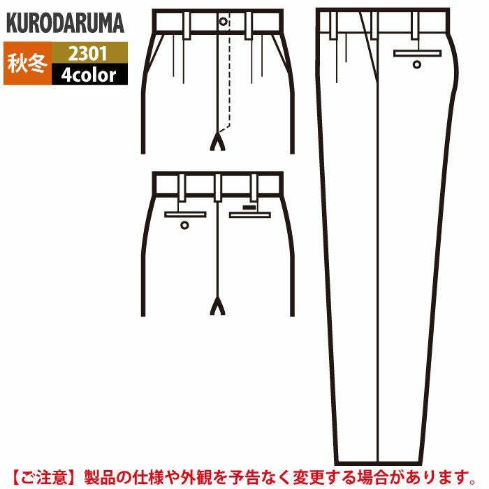 作業服 作業着 クロダルマ 作業服 秋冬用 2301 スラックス(ツータック) 70-88