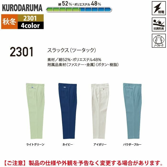 作業服 作業着 クロダルマ 作業服 秋冬用 2301 スラックス(ツータック) 91-116