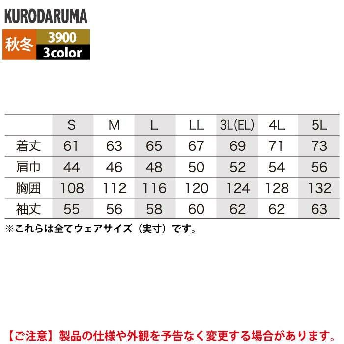 作業服 作業着 クロダルマ 作業服 秋冬用 3900 長袖ジャンパー 3L-5L