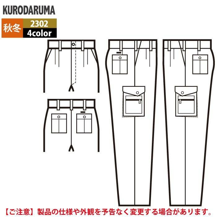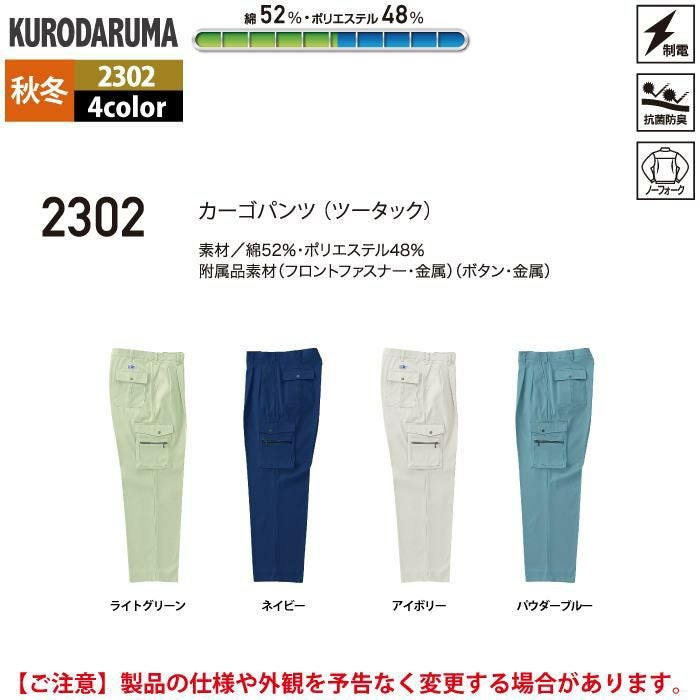 作業服 作業着 クロダルマ 作業服 秋冬用 2302 カーゴパンツ(ツータック) 91-116