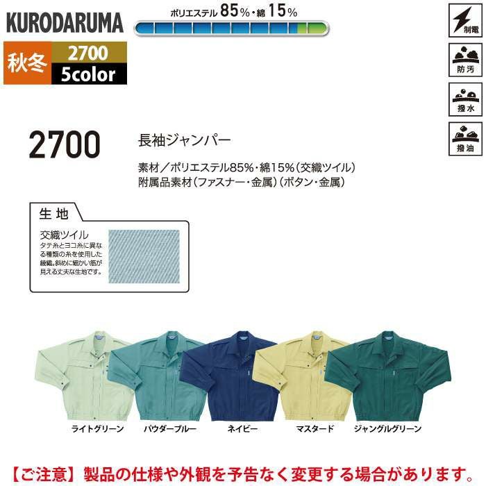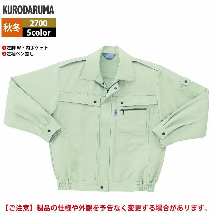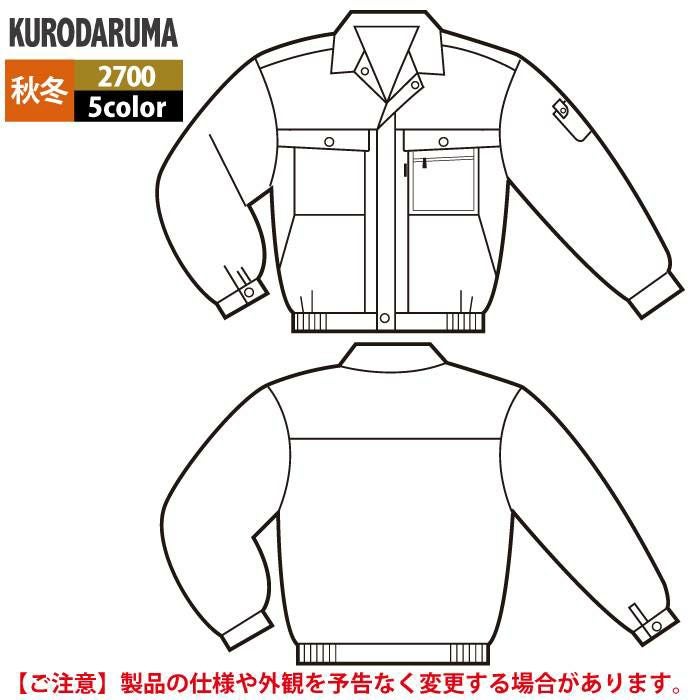 作業服 作業着 クロダルマ 作業服 秋冬用 2700 長袖ジャンパー S-LL