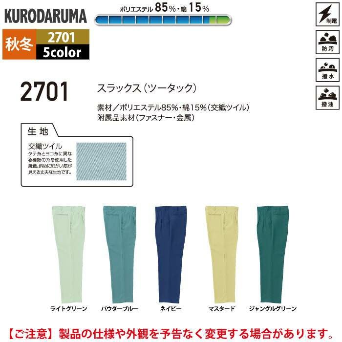 作業服 作業着 クロダルマ 作業服 秋冬用 2701 スラックス(ツータック) 70-88