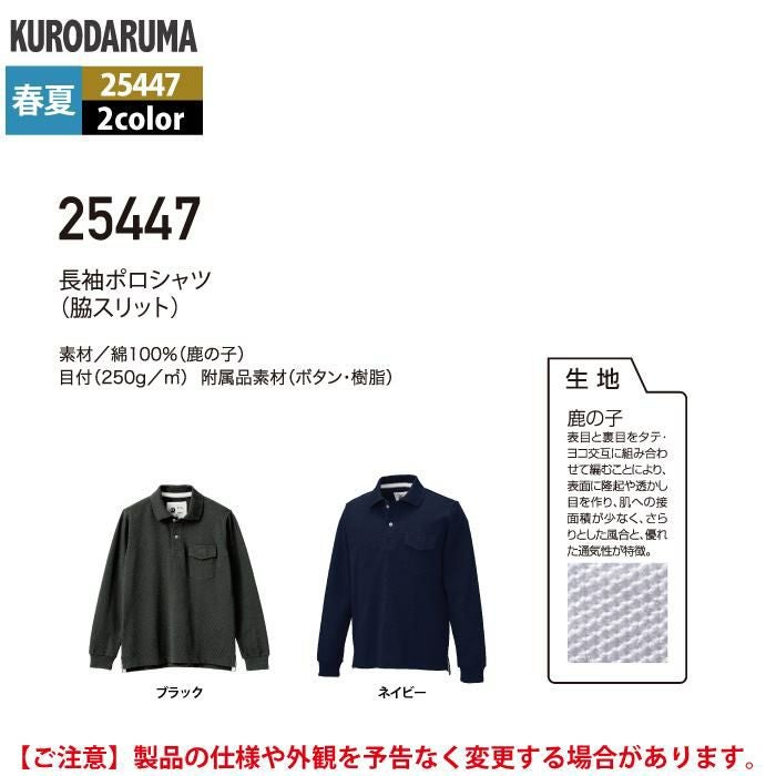 作業服 作業着 クロダルマ 作業服 春夏用 25447 長袖ポロシャツ S-LL