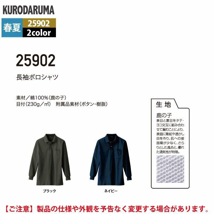 作業服 作業着 クロダルマ 作業服 春夏用 25902 長袖ポロシャツ 3L-4L