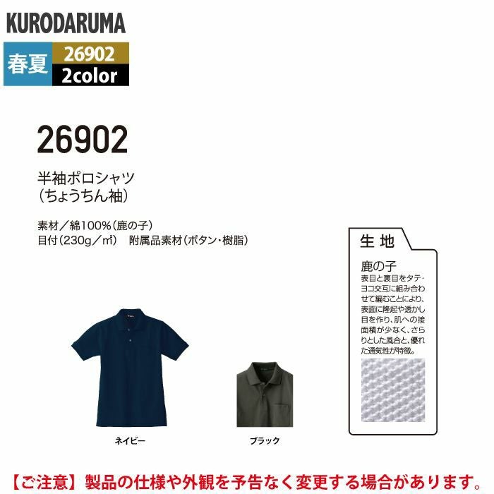 作業服 作業着 クロダルマ 作業服 春夏用 26902 半袖ポロシャツ S-LL