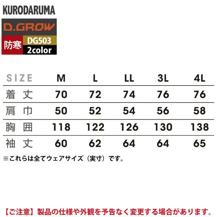 作業服 作業着 クロダルマ 作業服 防寒着 秋冬用 DG503 防寒コート(N-1スタイル) 3L-4L