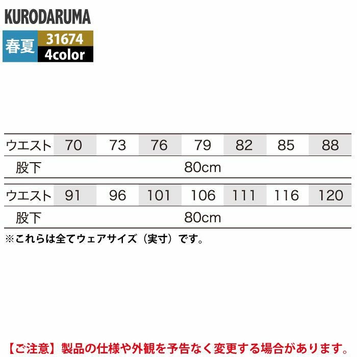 作業服 作業着 クロダルマ 作業服 春夏用 31674 スラックス 70-88