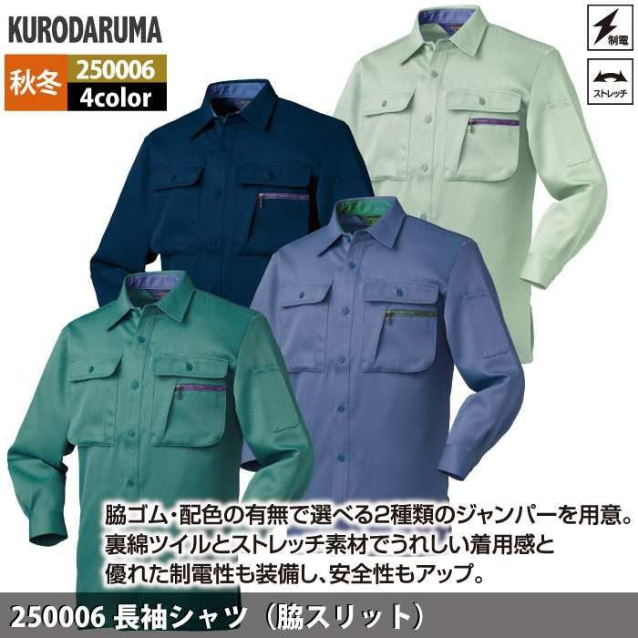 作業服 作業着 クロダルマ 作業服 秋冬用 250006 長袖シャツ(脇スリット) 3L-5L