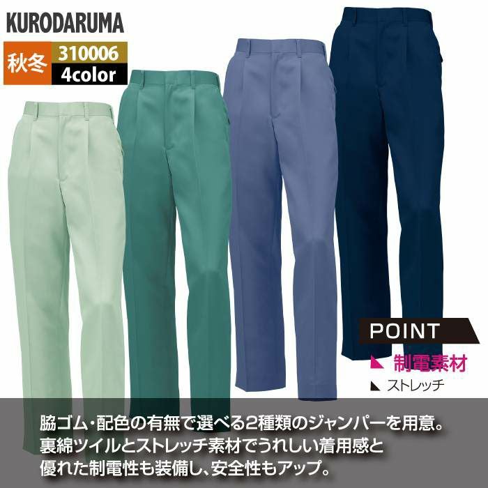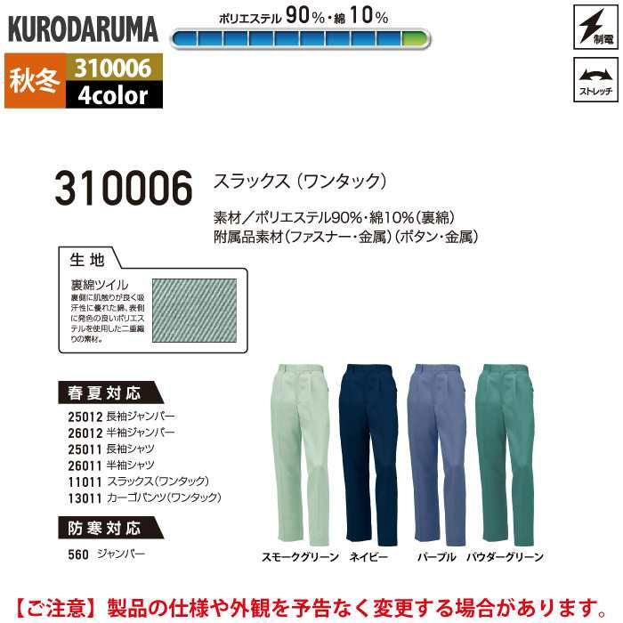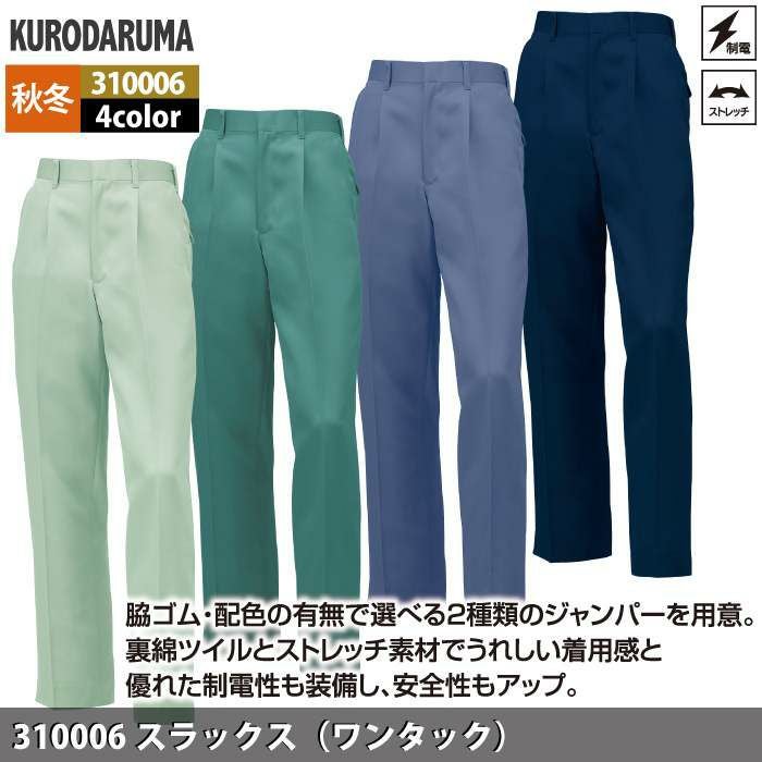 作業服 作業着 クロダルマ 作業服 秋冬用 310006 スラックス(ワンタック) 91-120
