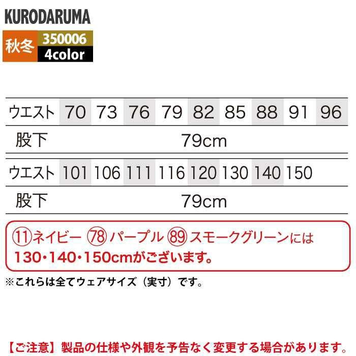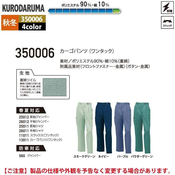 作業服 作業着 クロダルマ 作業服 秋冬用 350006 カーゴパンツ(ワンタック) 70-88
