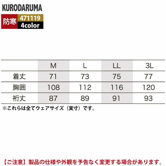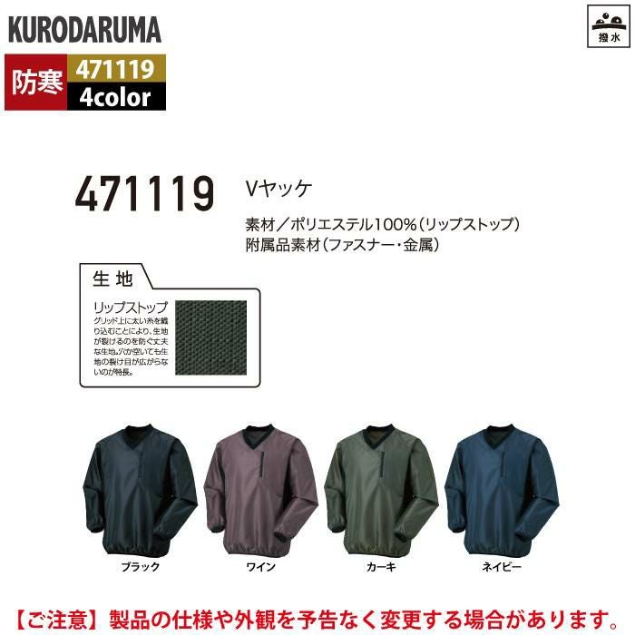 作業服 作業着 クロダルマ 作業服 防寒着 秋冬用 471119 Vヤッケ 3L