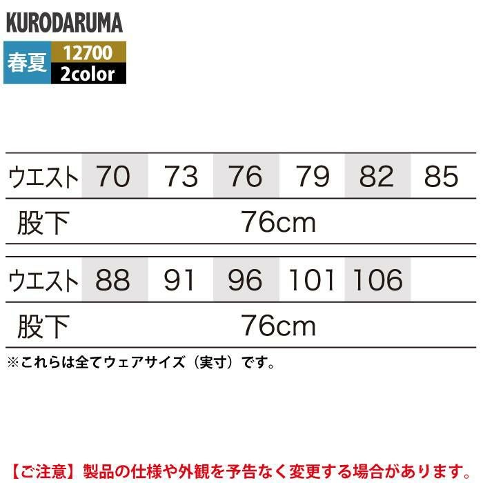 作業服 作業着 クロダルマ 作業服 春夏用 12700 スラックス 70-88