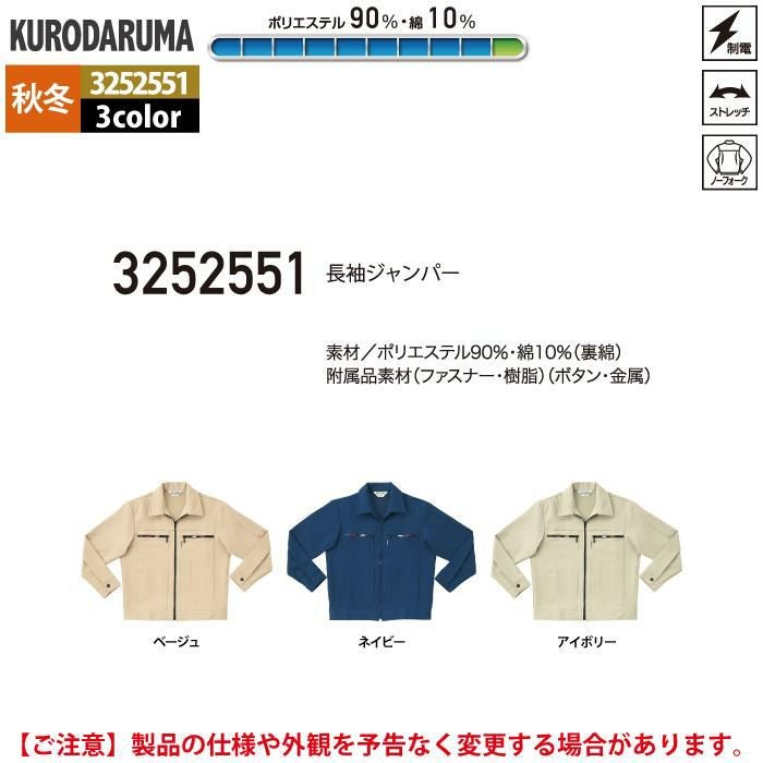 作業服 作業着 クロダルマ 作業服 秋冬用 3252551 長袖ジャンパー S-LL