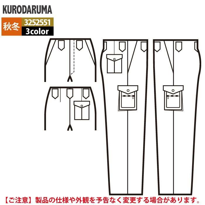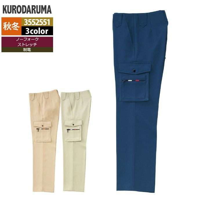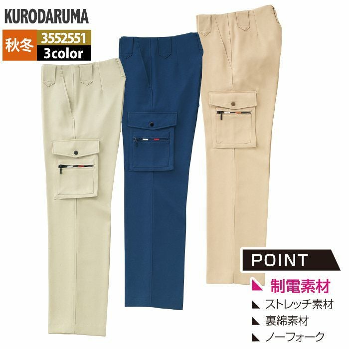 作業服 作業着 クロダルマ 作業服 秋冬用 3552551 カーゴパンツ(ノータック) 70-88