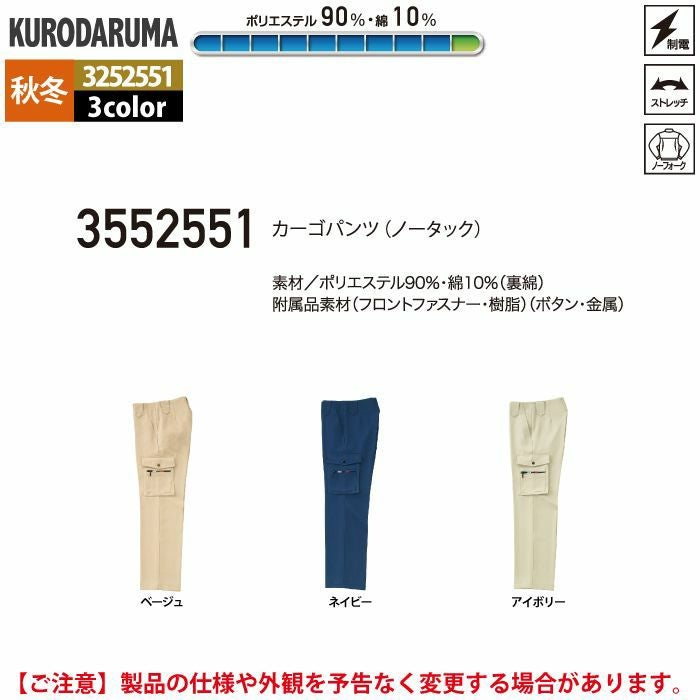 作業服 作業着 クロダルマ 作業服 秋冬用 3552551 カーゴパンツ(ノータック) 91-116