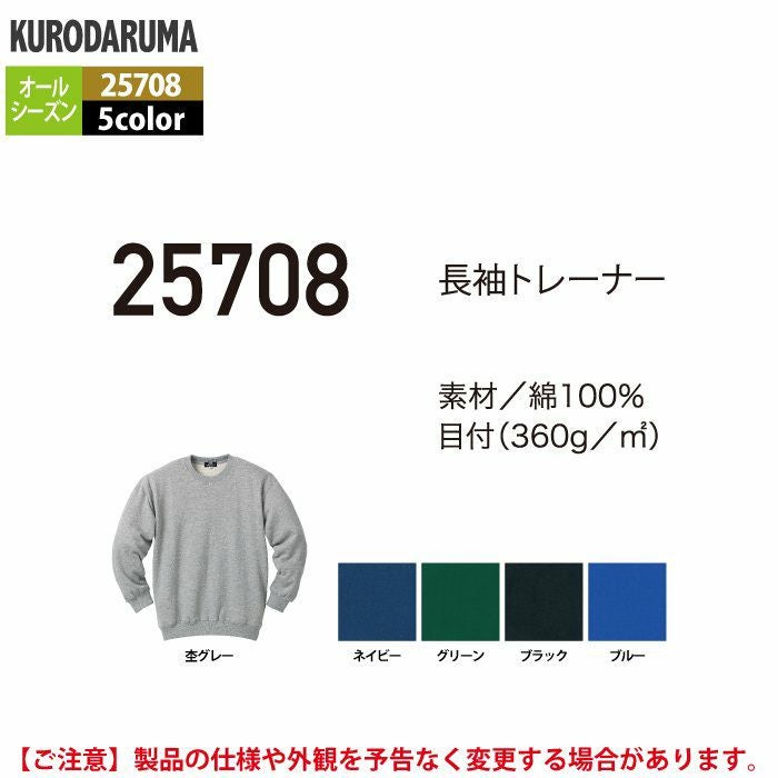 作業服 作業着 クロダルマ 作業服 オールシーズン 25708 長袖トレーナー M-LL