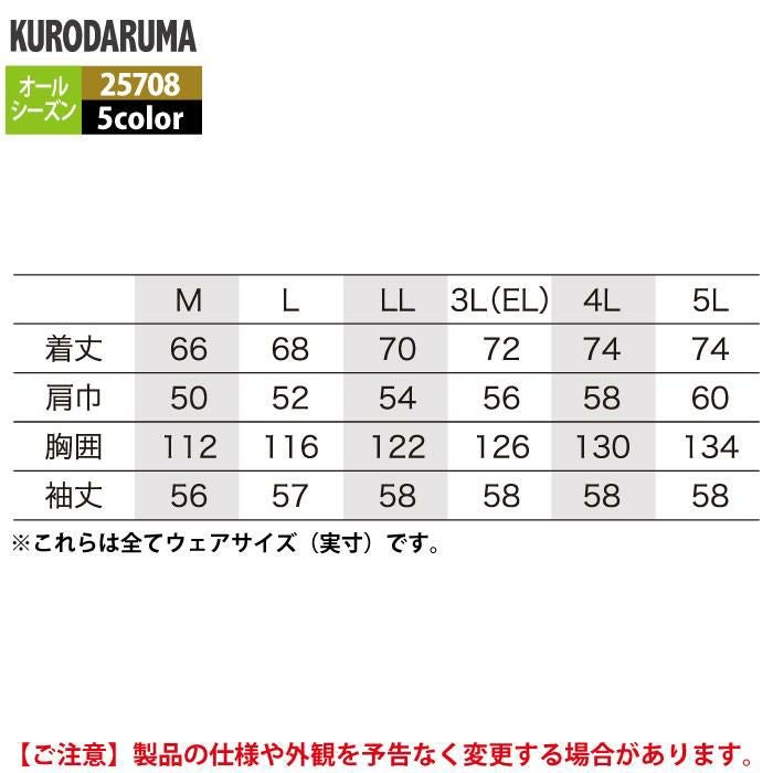 作業服 作業着 クロダルマ 作業服 オールシーズン 25874 長袖シャツ 3L-5L