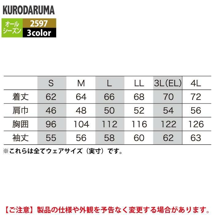 作業服 作業着 クロダルマ 作業服 オールシーズン 2597 長袖トレーナー 3L-4L