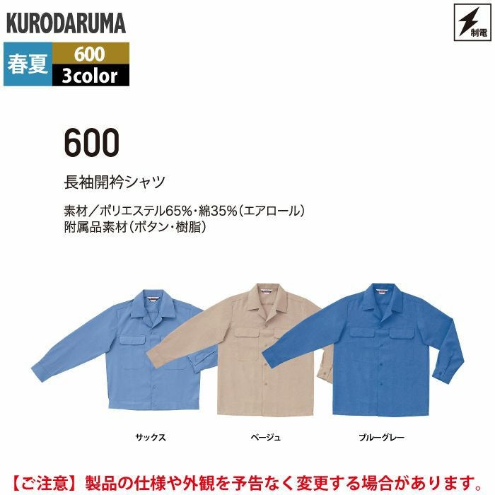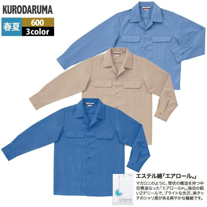 作業服 作業着 クロダルマ 作業服 春夏用 600 長袖開衿シャツ S-LL