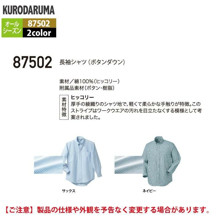作業服 作業着 クロダルマ 作業服 オールシーズン 87502 長袖シャツ(ボタンダウン) M-LL