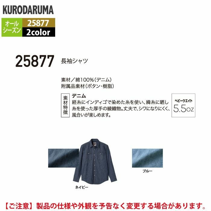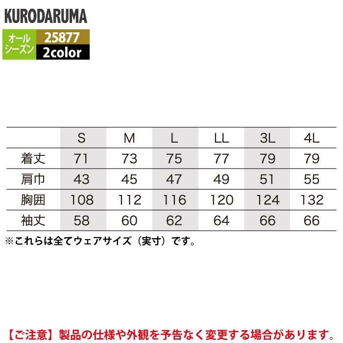 作業服 作業着 クロダルマ 作業服 オールシーズン 25877 長袖シャツ 3L-4L