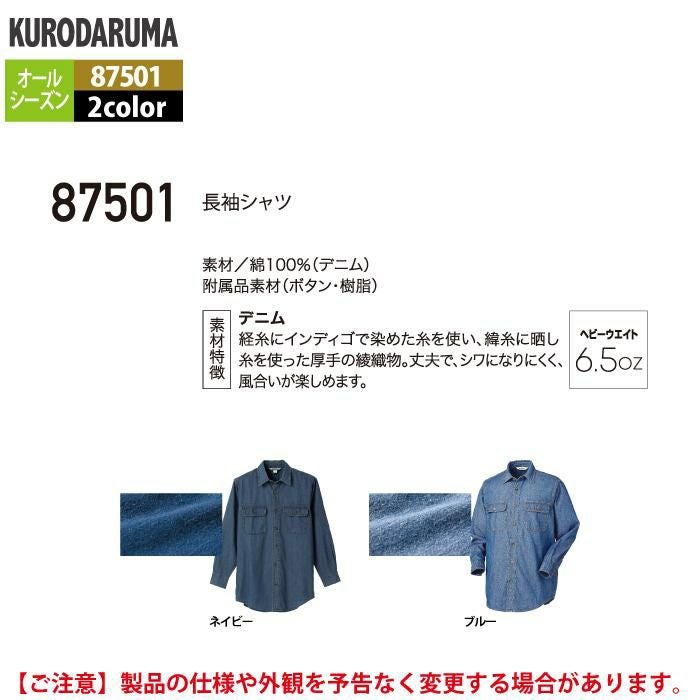 作業服 作業着 クロダルマ 作業服 オールシーズン 87501 長袖シャツ S-LL