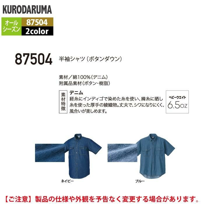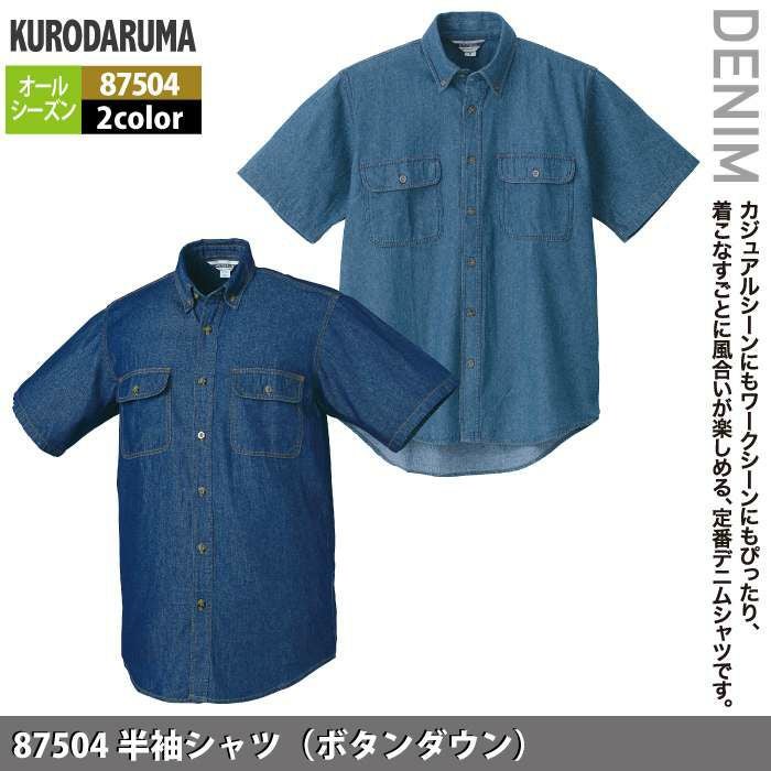 作業服 作業着 クロダルマ 作業服 オールシーズン 87504 半袖シャツ(ボタンダウン) M-LL