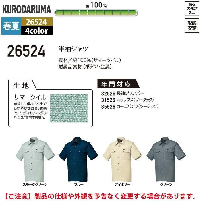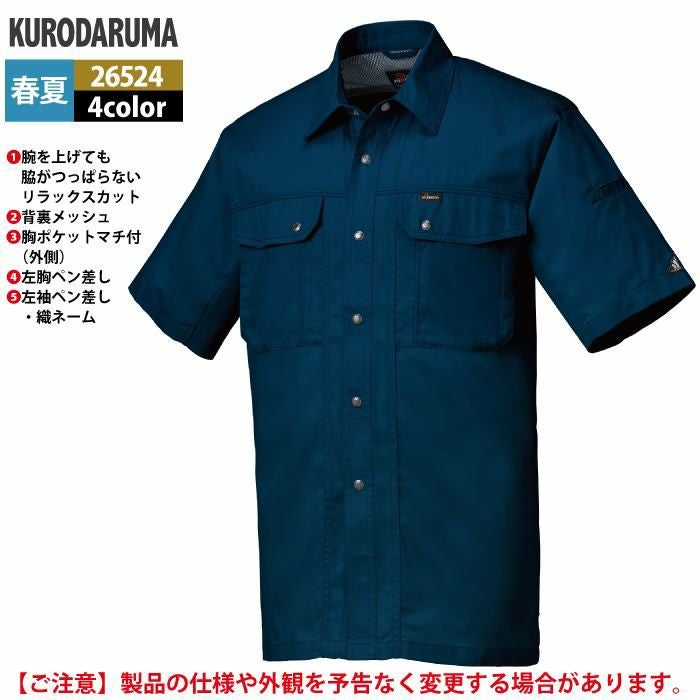 作業服 作業着 クロダルマ 作業服 春夏用 26524 半袖シャツ S-LL