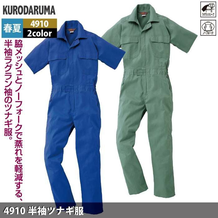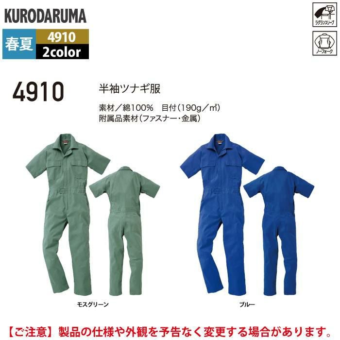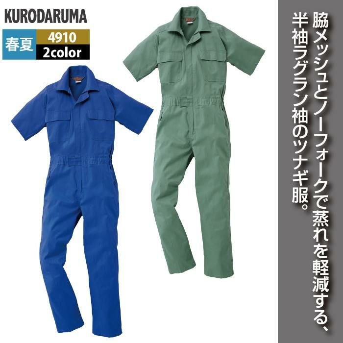 作業服 作業着 クロダルマ 作業服 春夏用 4910 半袖ツナギ服 M-LL