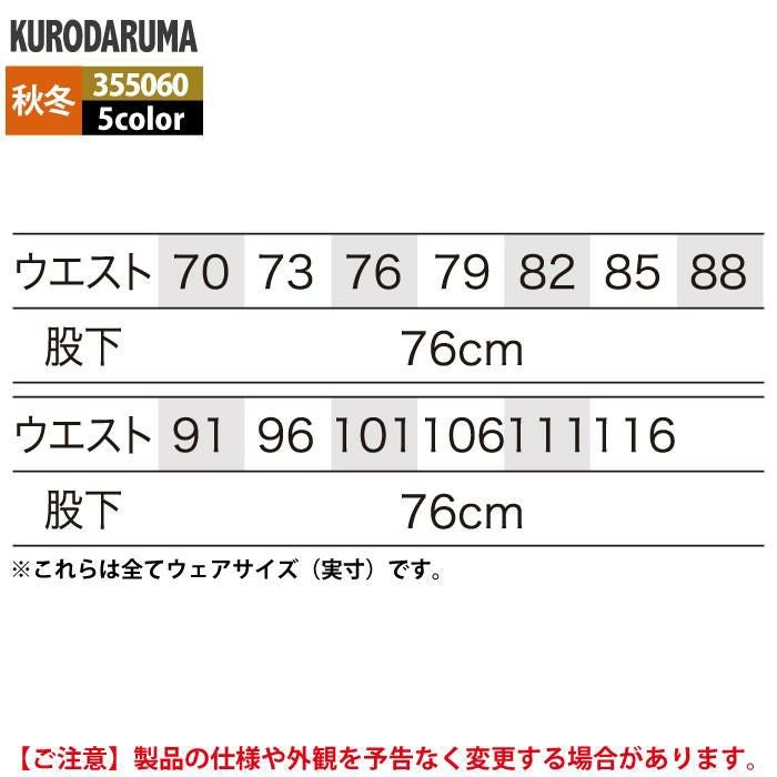 作業服 作業着 クロダルマ 作業服 秋冬用 355060 カーゴパンツ(ノータック) 70-88