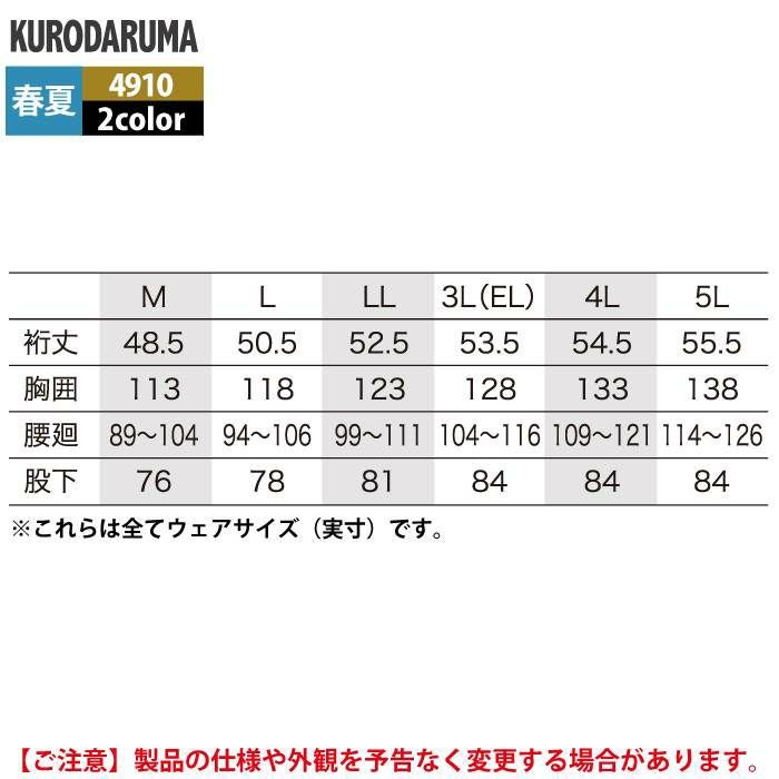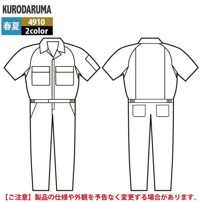 作業服 作業着 クロダルマ 作業服 春夏用 4910 半袖ツナギ服 3L-5L
