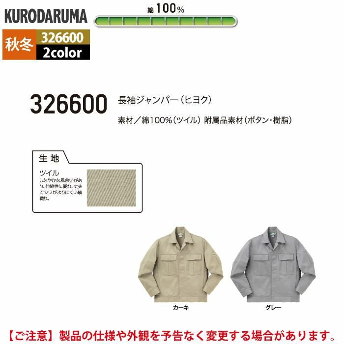 作業服 作業着 クロダルマ 作業服 秋冬用 326600 長袖ジャンパー(ヒヨク) S-LL