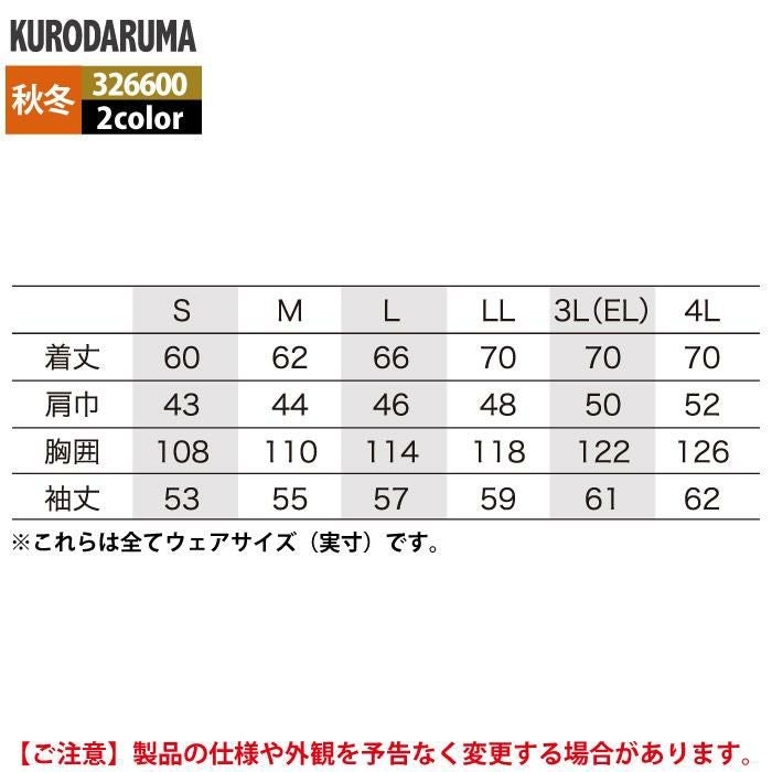 作業服 作業着 クロダルマ 作業服 秋冬用 326600 長袖ジャンパー(ヒヨク) 3L-4L