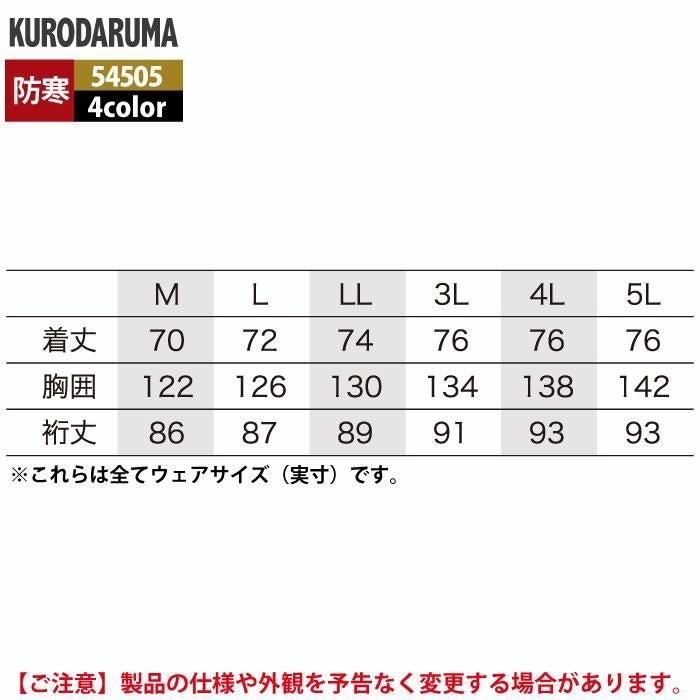 作業服 作業着 クロダルマ 作業服 防寒着 秋冬用 54505 ジャンパー 3L-5L