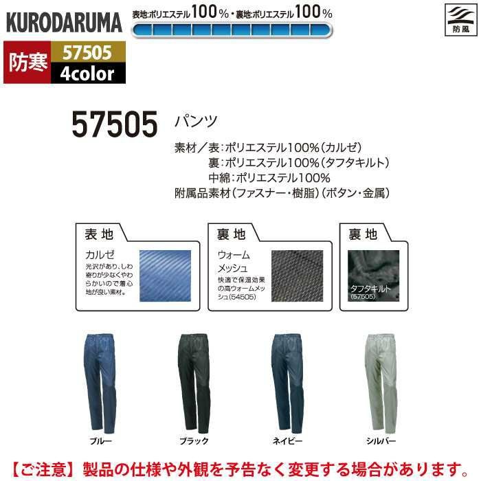 作業服 作業着 クロダルマ 作業服 防寒着 秋冬用 57505 パンツ M-LL