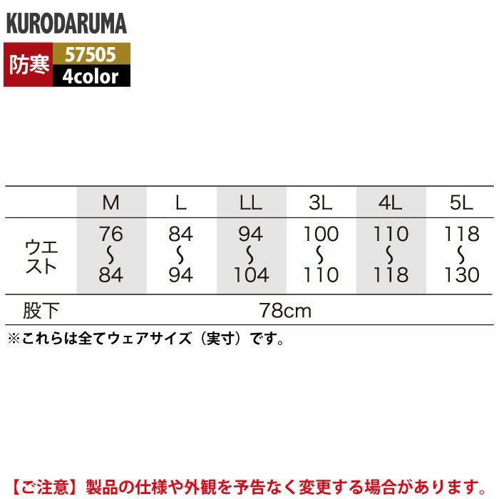 作業服 作業着 クロダルマ 作業服 防寒着 秋冬用 57505 パンツ 3L-5L
