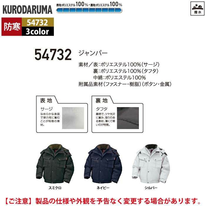 作業服 作業着 クロダルマ 作業服 防寒着 秋冬用 54732 ジャンパー 3L-5L