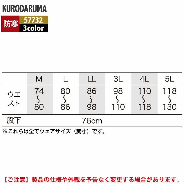 作業服 作業着 クロダルマ 作業服 防寒着 秋冬用 57732 パンツ 3L-5L