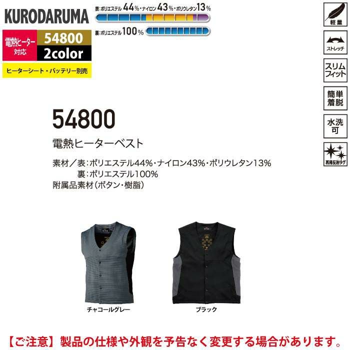 作業服 作業着 クロダルマ 作業服 防寒着 秋冬用 54800 電熱ヒーターベスト M-LL