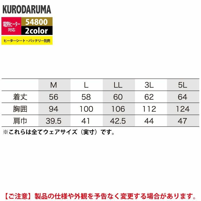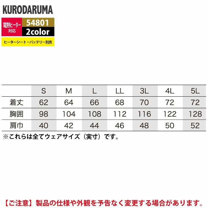 作業服 作業着 クロダルマ 作業服 防寒着 秋冬用 54800 電熱ヒーターベスト 3L