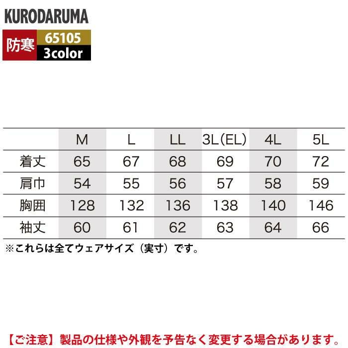 作業服 作業着 クロダルマ 作業服 防寒着 秋冬用 65105 ジャンパー 3L-5L